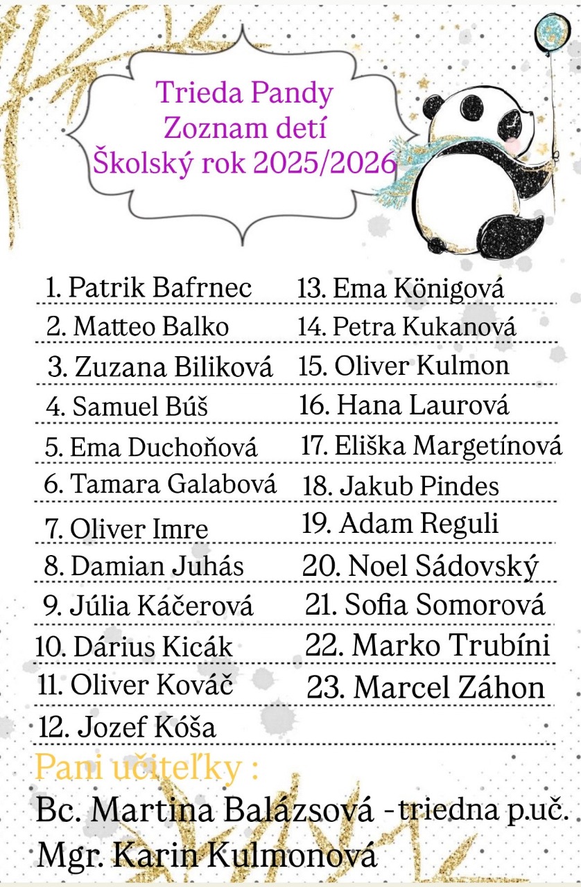 Zoznam detí - školský rok 2025/2026